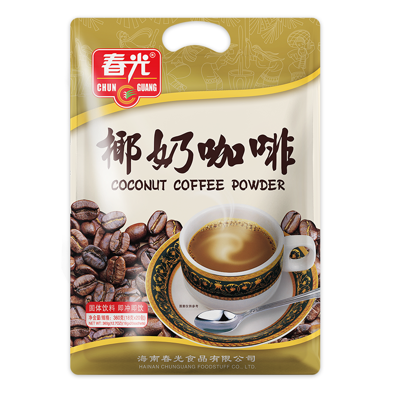 白砂糖、植脂末【植物油、玉米糖漿、食品添加劑(酪蛋白酸鈉、單,雙甘油脂肪酸酯、硬脂酰乳酸鈉、磷酸氫二鉀、檸檬酸鈉、二氧化硅)】、椰漿粉【椰子原汁、麥芽糊精、食品添加劑(酪蛋白酸鈉、大豆磷脂、單,雙甘油脂肪酸酯、卡拉膠、辛烯基琥珀酸淀粉鈉、D-異抗壞血酸鈉)】、咖啡粉。