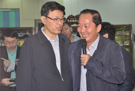 11月28日上午,冒著寒綿冬雨,踩著泥濘大地,省長蔣定之帶領(lǐng)參加全省品牌農(nóng)業(yè)發(fā)展推進大會的代表考察了我司文昌廠區(qū),公司黃春光董事長等相關(guān)領(lǐng)導陪同介紹。