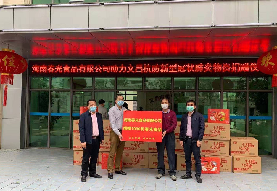 2月5日,海南春光食品向文昌市一線防疫醫(yī)務(wù)人員和集中醫(yī)學(xué)觀察點(diǎn)共捐贈了1000份食品,助力文昌市疫情防控工作。