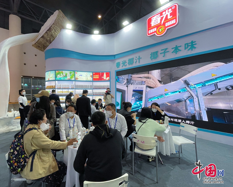 在參展商品中,春光食品帶來的春光椰汁、一口鮮氣椰汁備受矚目。