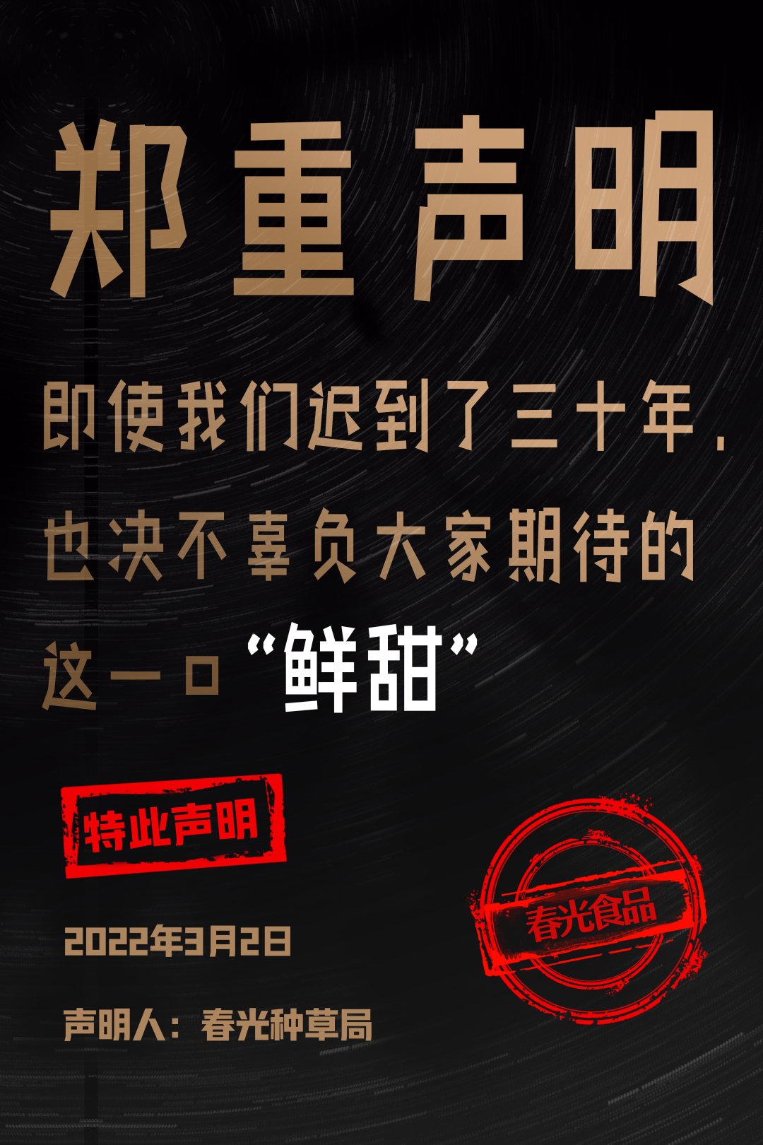 在新品官宣期間,春光食品連發(fā)26條新品聲明,用簡單粗暴又不失趣味性的文案高效傳遞了品牌態(tài)度與產(chǎn)品賣點(diǎn),在大量地圍觀和傳播擴(kuò)散之下,聲明文案成功地吸引了廣大網(wǎng)友的注意力。據(jù)了解,接下來春光食品還將開辦線下品鑒會快閃店、圍繞產(chǎn)品設(shè)計ip卡通等一系列年輕化動作。
